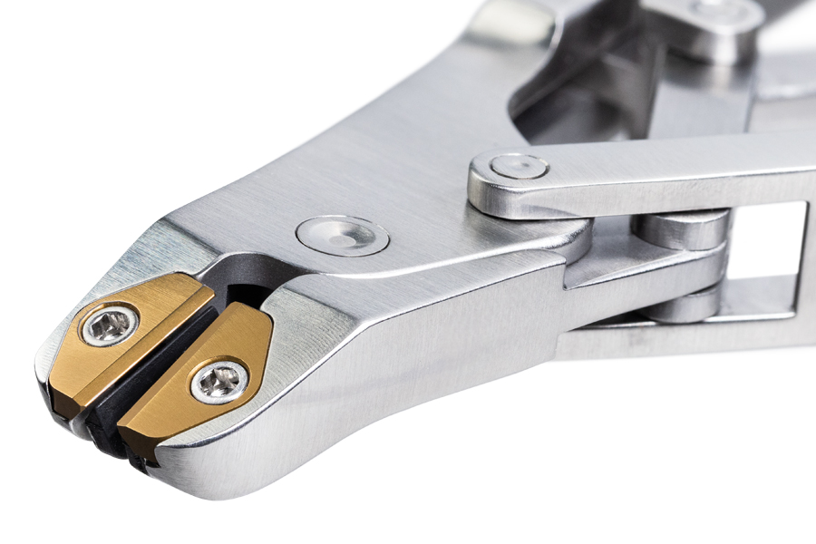 Replaceable Rubber Guards ensure secure holding of the wire after cutting.